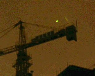 2013年6月6日凌晨,武漢市區(qū)電閃雷鳴。《武漢晨報(bào)》攝影記者石一在機(jī)場(chǎng)高速公路與馬池路交會(huì)處附近的一個(gè)小區(qū)拍攝雷電時(shí),無(wú)意中拍到幾個(gè)綠黃色神秘光團(tuán)(圖2、3)。[2]