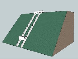 如上圖所示:軌道上建一滑動(dòng)三角平臺(tái),以牽引索與上方滑輪相接;滑輪設(shè)計(jì)成類似汽車無級(jí)變速式任意可調(diào)比例?;喠硪环娇拥乐芯Y以重物,來往車輛開上平臺(tái)后,上方滑輪調(diào)整比例使車輛加平臺(tái)重量形成斜面拉力與重物在另一端的滑輪調(diào)整后拉力大致相等。開動(dòng)小功率電機(jī),迅速把車輛拉上山頂,鎖定纜索滑輪另一端重物有所下降。相反車輛下山時(shí)反向操作即可,這樣就通過滑輪和重物把車輛來回的能量相互轉(zhuǎn)換,完成幾乎不耗爬山能量的運(yùn)輸交通,只付出很小部分摩擦阻力的功。和平路一樣。