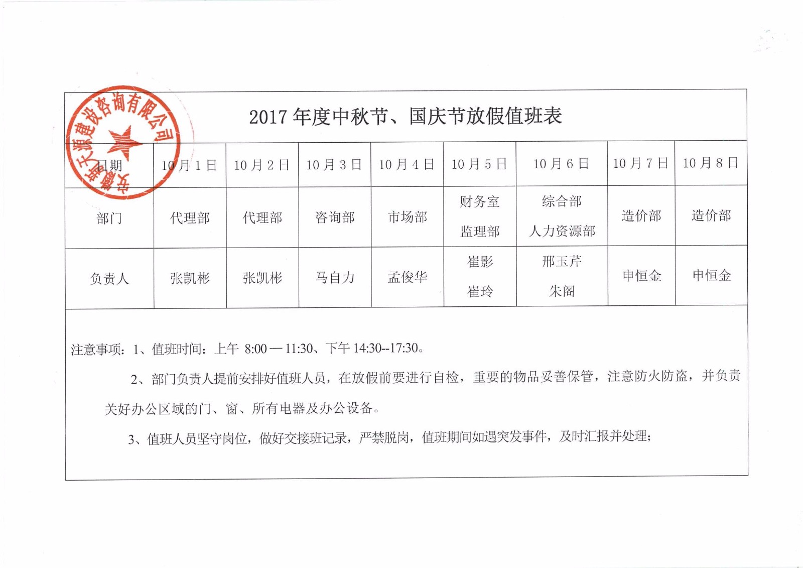 2017年度中秋節(jié)、國(guó)慶節(jié)放假通知