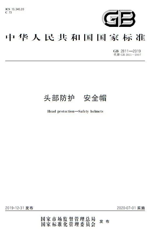 國家市場監(jiān)管總局、國家標(biāo)準(zhǔn)委批準(zhǔn)發(fā)布新版安全帽標(biāo)準(zhǔn)GB2811-2019《頭部防護(hù) 安全帽》,將于2020年7月1日起正式生效。