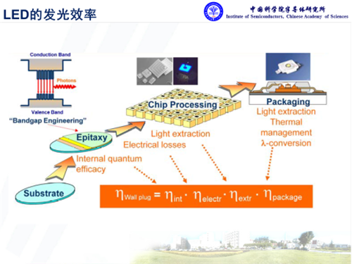 氮化鎵是直接帶隙的半導體材料,在光電應用方面具有獨特優(yōu)勢?;诘壍腍B-LED對于通用照明來說,其核心問題是發(fā)光效率。其中外量子效率主要取決于三個層面的因素,內(nèi)量子效率、光提取效率,還有封裝方面的熒光轉(zhuǎn)化等效率,而且每個環(huán)節(jié)都息息相關。
