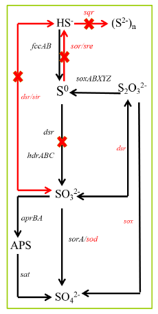 圖2-5 硫化物和有機物(以乙酸鹽為例)的氧化途徑